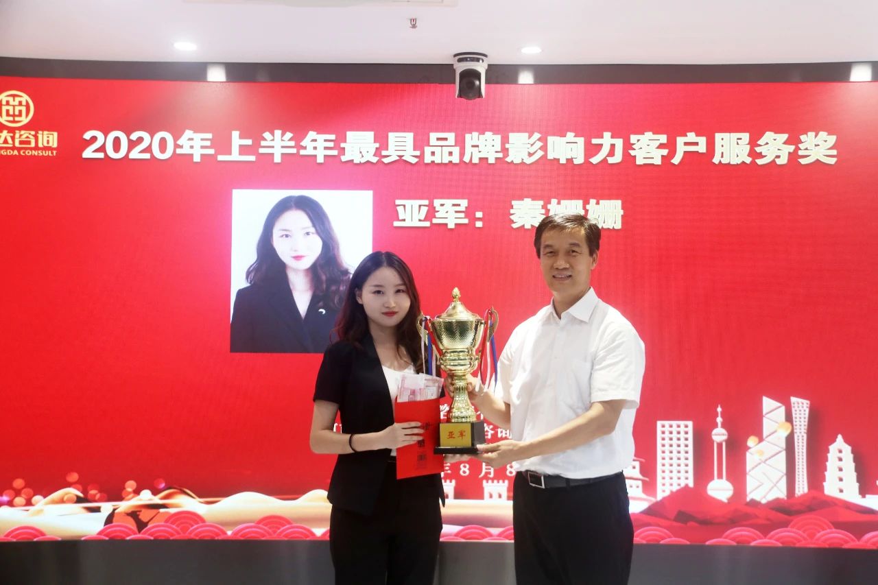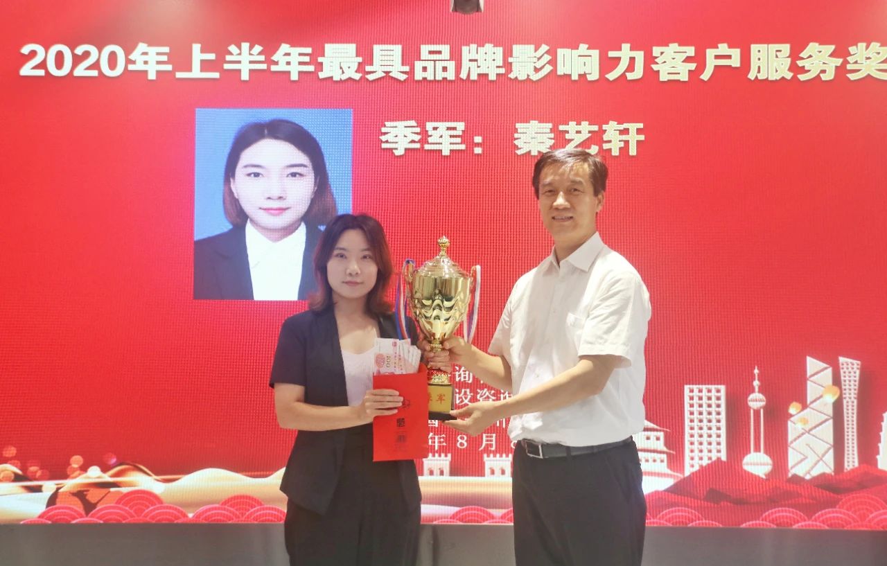董事長楊明宇為在2020年上半年客戶服務工作中表現突出的先進個人頒發獎杯和獎金。