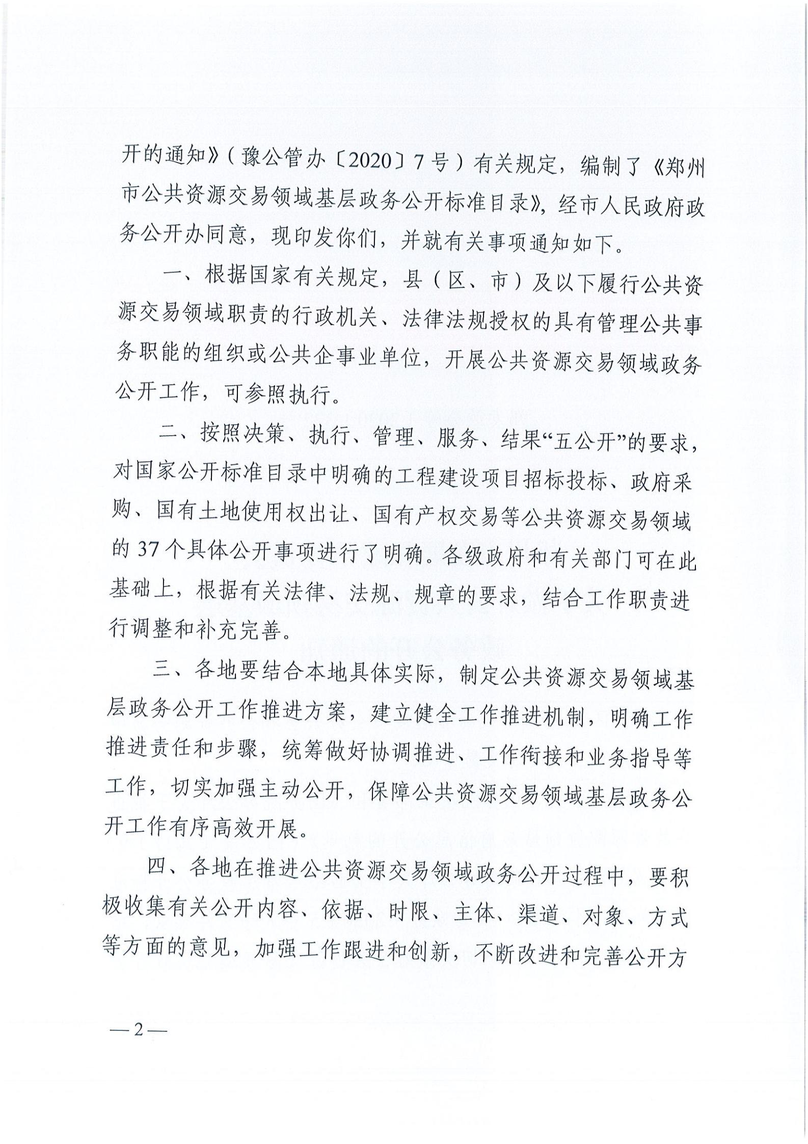 鄭州市發改委關于做好公共資源交易領域基層政務公開的通知鄭發改公管2020-322號(含標準目錄)